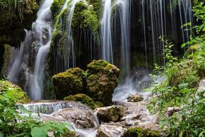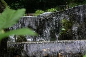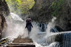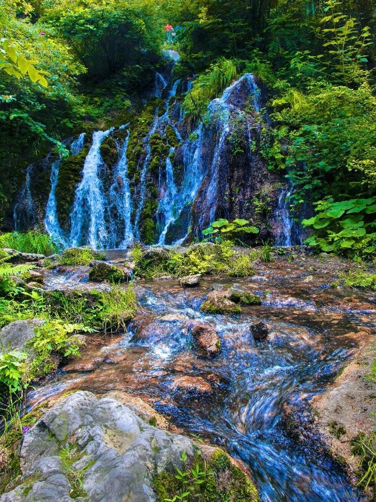 珍珠瀑分为三层,走在瀑布中间的岩石上,远远望去就感觉是人在瀑中走,瀑在身边流,好似一幅绝美画卷。