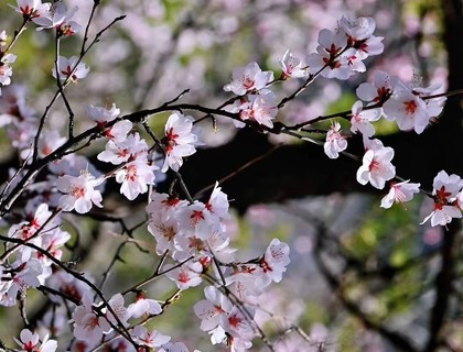 粉白相间的野桃花如繁星点缀