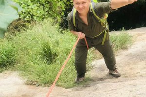 借助登山绳征服近80°陡坡
