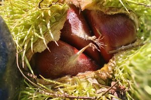 饱满油亮的栗子便蹦跳而出