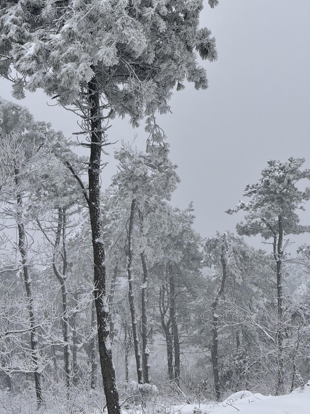 当第一片雪花轻吻洛宁庙子林场的杉树梢头